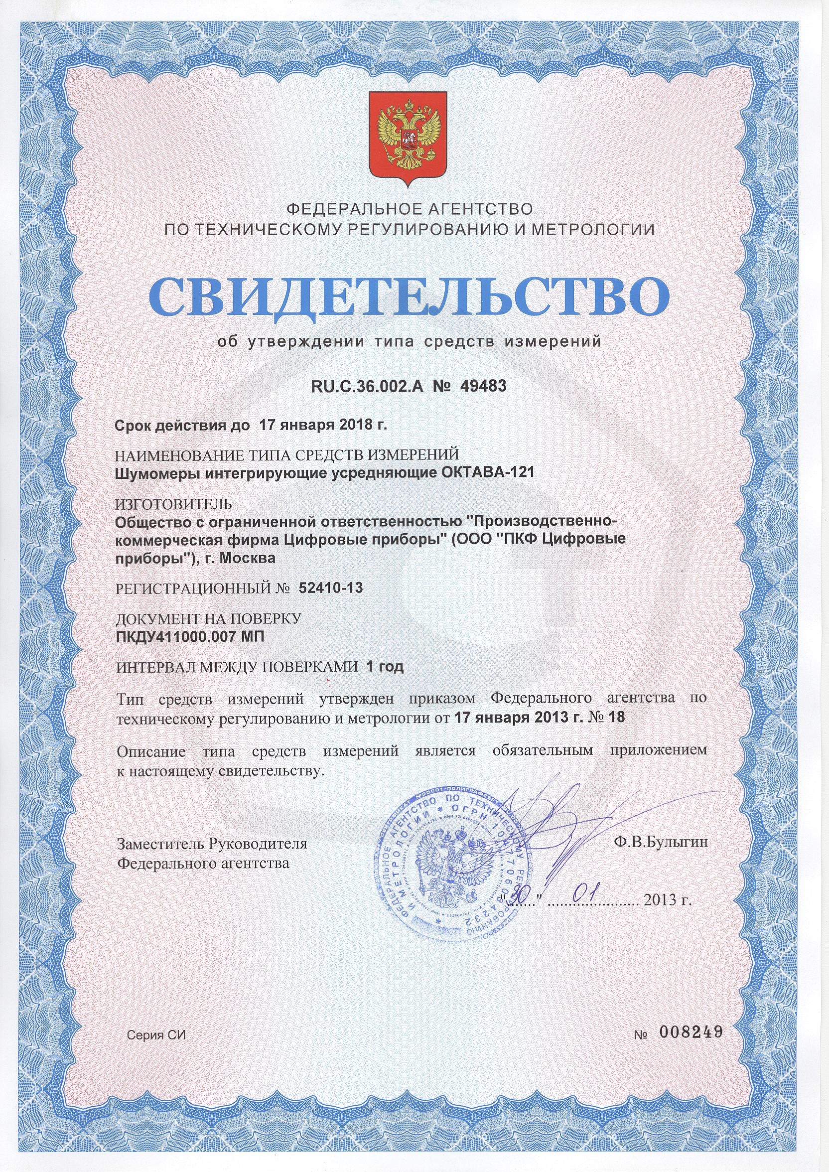 Шумомер соответствует обязательным метрологическим требованиям, утвержденным приказом МВД РФ No.1014 от 08.11.2012 для измерений при проведении технического осмотра автотранспортных средств и расследования обстоятельств ДТП, а также приказом МЗСР РФ No.1034 от 09.09.2011 для измерений при выполнении работ по обеспечению безопасных условий труда.
